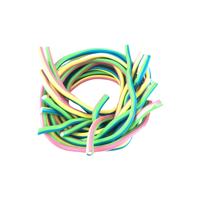 Delicious fruit flavoured cable with a fondant filling. Giant Rainbow Cables are just one of a range, offering youngsters a long gummy sweet with a fondant filling.