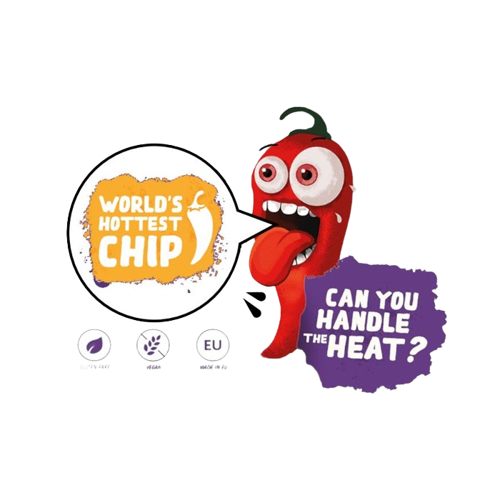 Inside the package, you will find one extremely hot chip, specially wrapped to keep the highest spiciness and quality locked in. The package also includes a protective glove, tattoo, sticker and certificate. We recommend you use the glove provided. Wash yours hands if you do handle the chip, before you touch your eyes or other body parts.