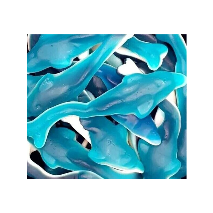 Giant blue dolphins are a great addition to our gummy range of sweets from Vidal. This wholesale bulk bag contains 2kg. Gluten Free.